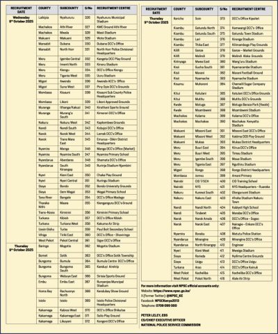 The Public is urged to report any incidences of recruitment malpractices to the nearest Police Station or call 0709099000, 999, 911,112 or #fichuakwaDCI 0800722203.